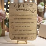 Pancarte en bois A4, conçue pour le jeu des bouchons, avec un espace clair pour expliquer les règles à vos invités.
