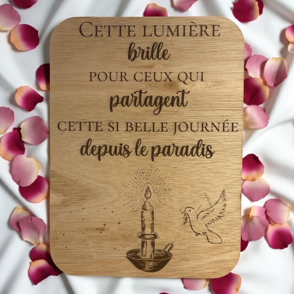 Pancarte en bois A4, conçue pour rendre hommage aux êtres chers qui ne sont plus parmi nous.