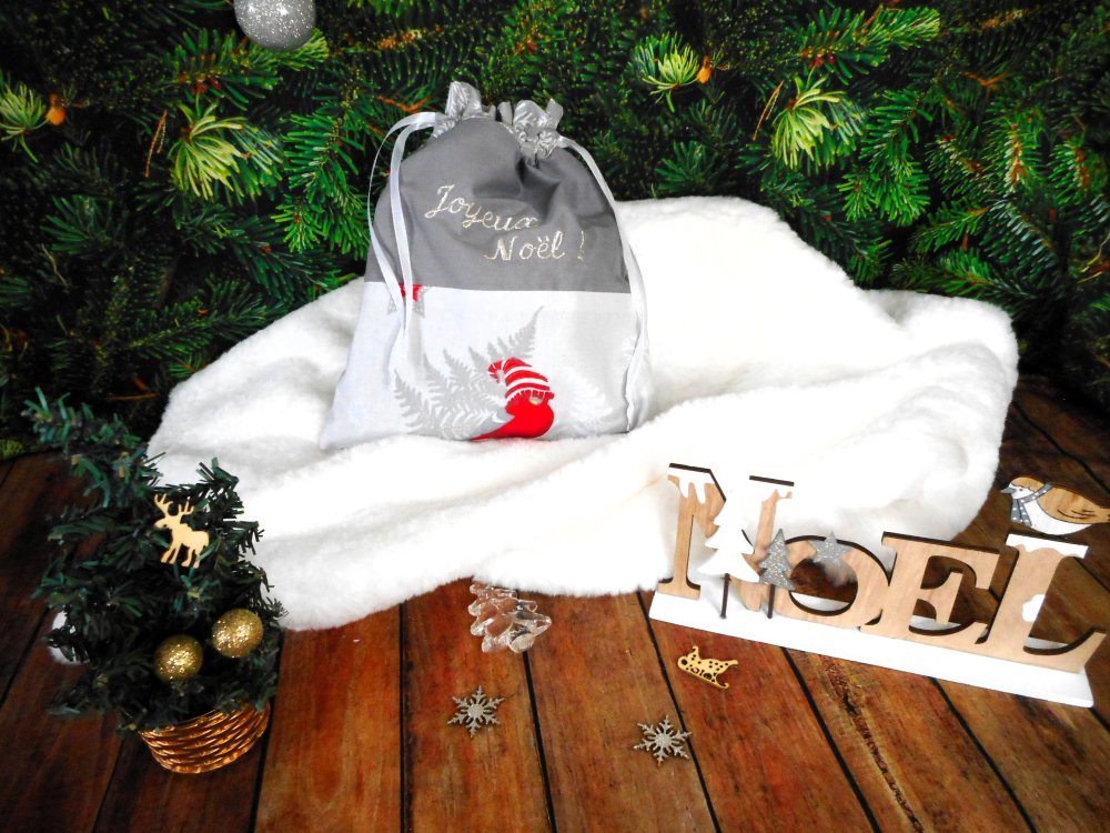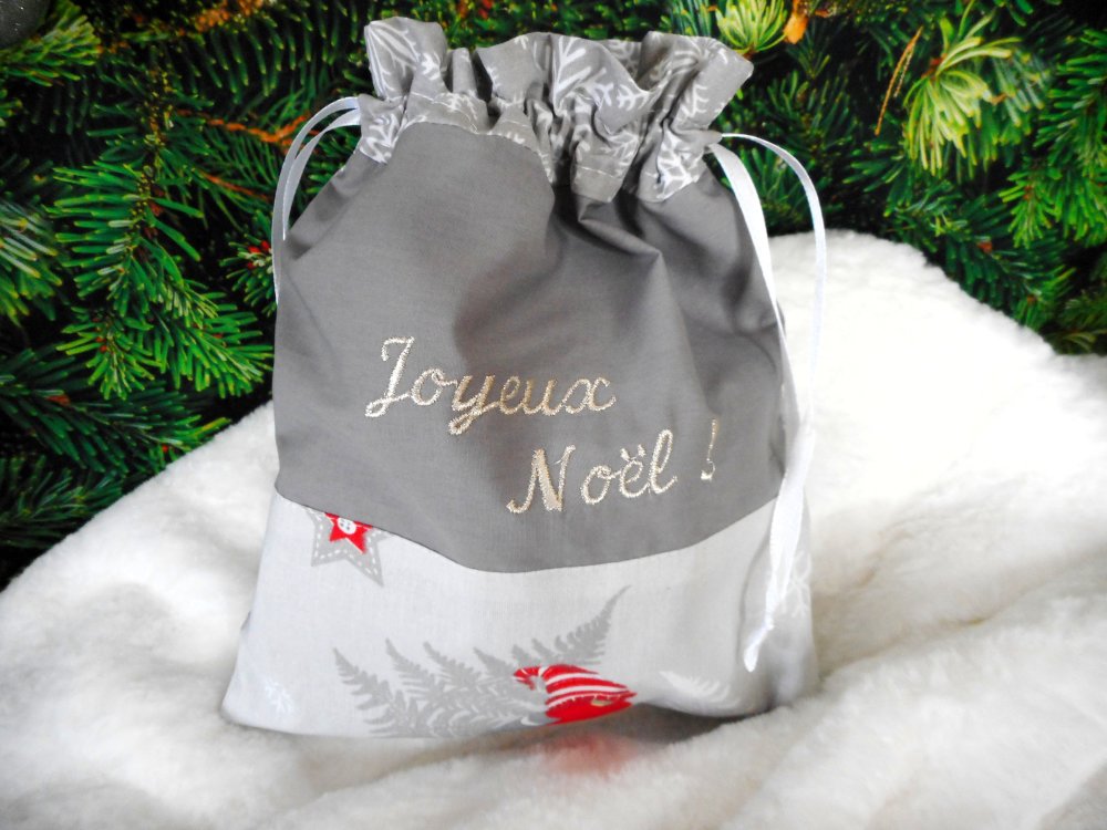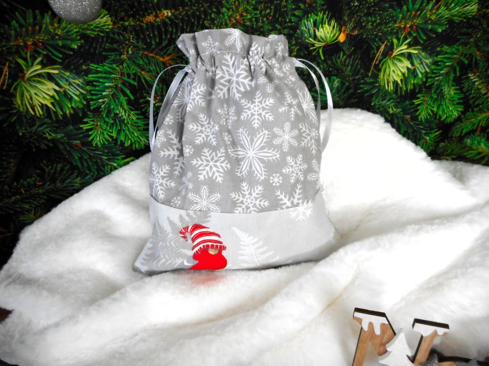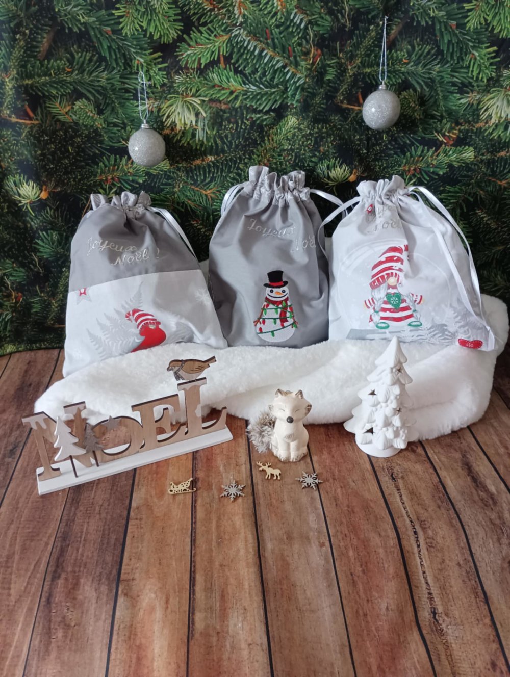 Pochon cadeau en tissu de Noël, il remplace de façon écologique et durable le papier cadeau à usage unique.