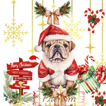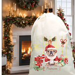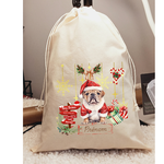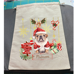 Sac cadeaux "chien, bonnet de Noël", personnalisable, en coton