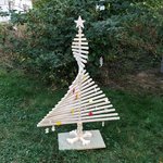 SAPIN De NOËL Hauteur 1000 mm (39 3⁄8 in)en bois naturel. Largeur, 740 mm (29 9/64 in). alternance de 19 tasseaux et 19 cubes, lattes bois. Pied carré, haut cube. Toutes les pièces peuvent pivoter