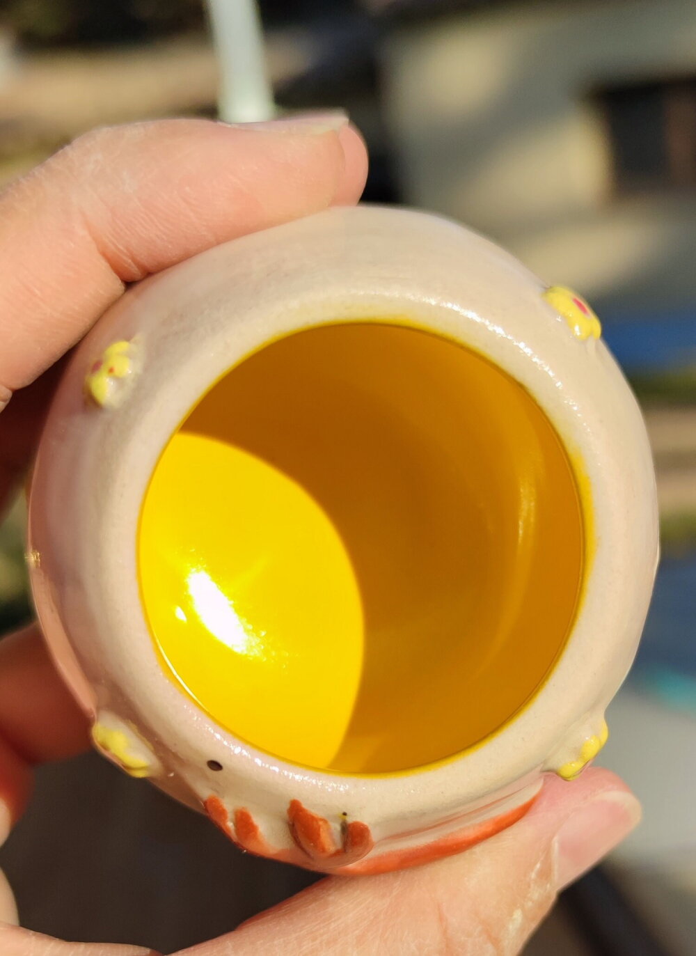 Tasse expresso sans anse en faïence pour usage alimentaire ou décoratif .