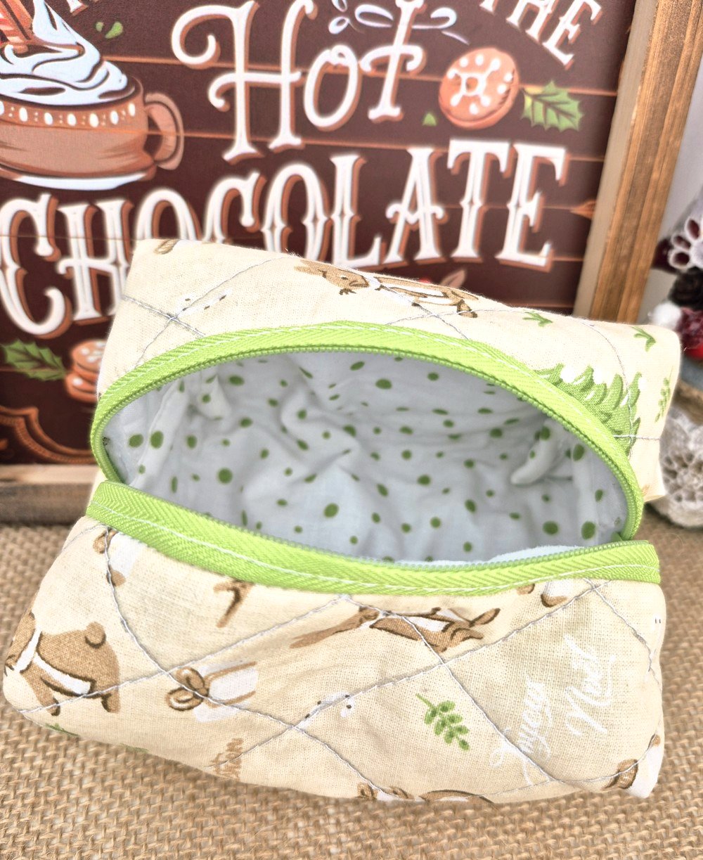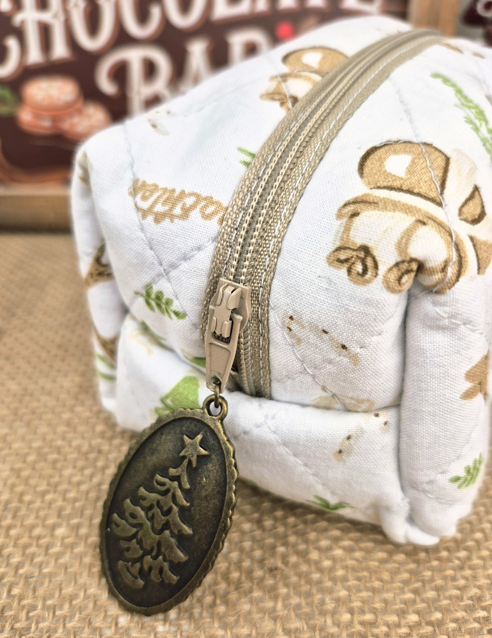 trousse à maquillage matelassée fait main Noël