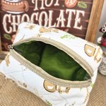 Chaque trousse est réalisée à la main avec soin, utilisant du tissu coton de qualité, ce qui en fait un accessoire à la fois pratique et élégant. Parfaites pour glisser dans votre sac à main ou pour offrir en cadeau, ces trousses uniques apporteront une touche festive
