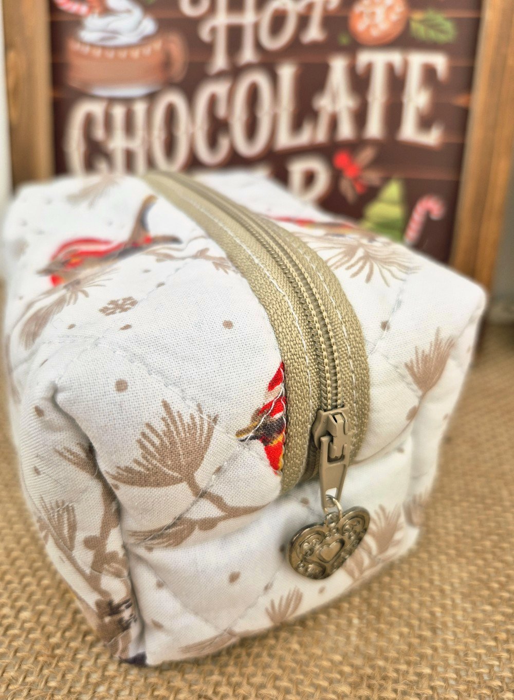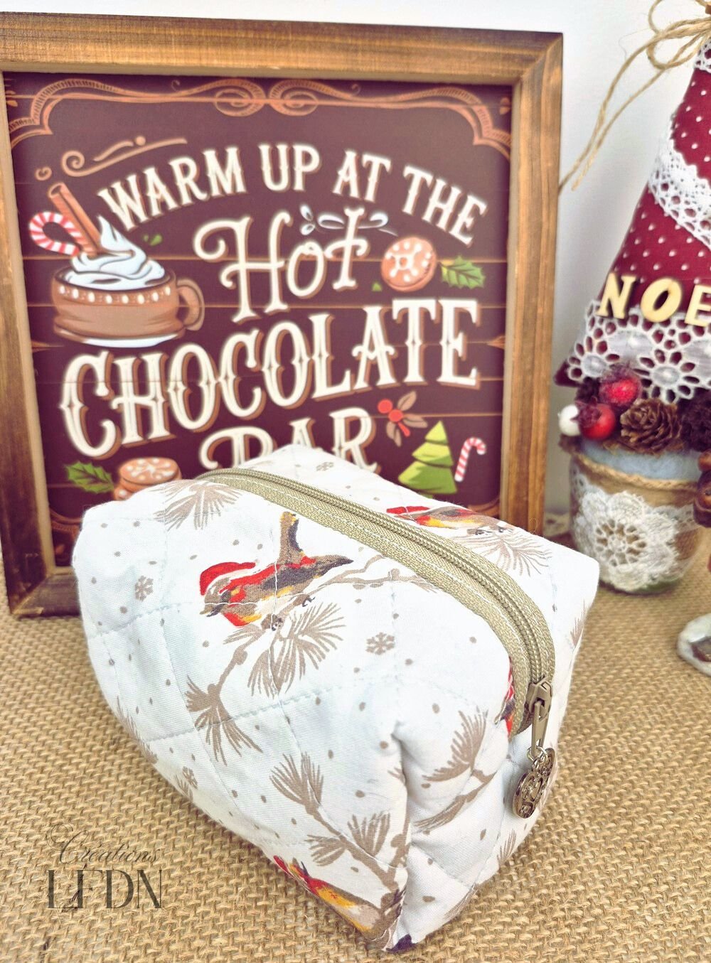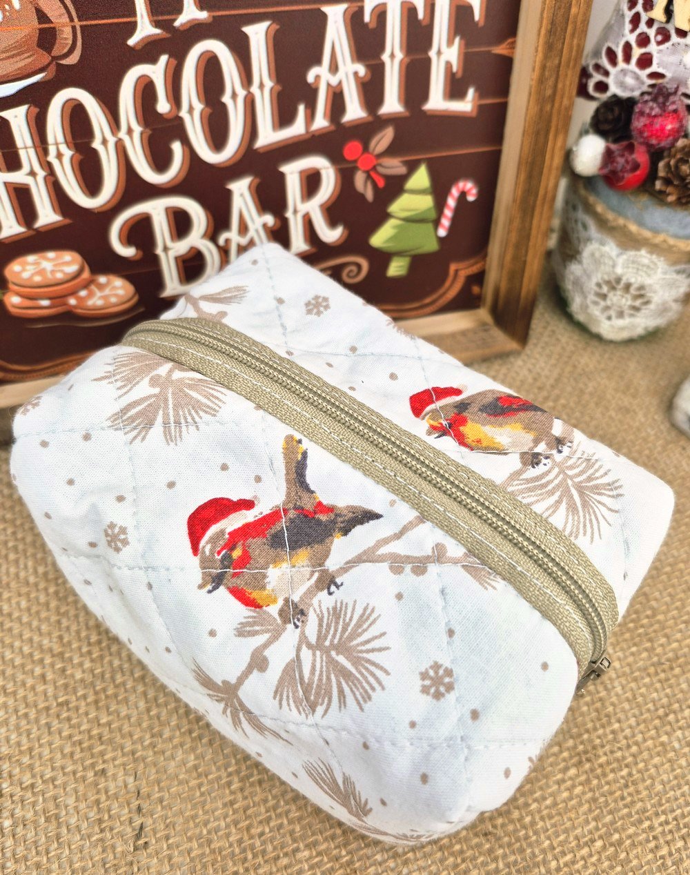 trousse à maquillage matelassée fait main Noël