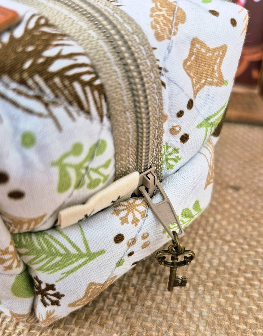 Chaque trousse est réalisée à la main avec soin, utilisant du tissu coton de qualité, ce qui en fait un accessoire à la fois pratique et élégant. Parfaites pour glisser dans votre sac à main ou pour offrir en cadeau, ces trousses uniques apporteront une touche festive