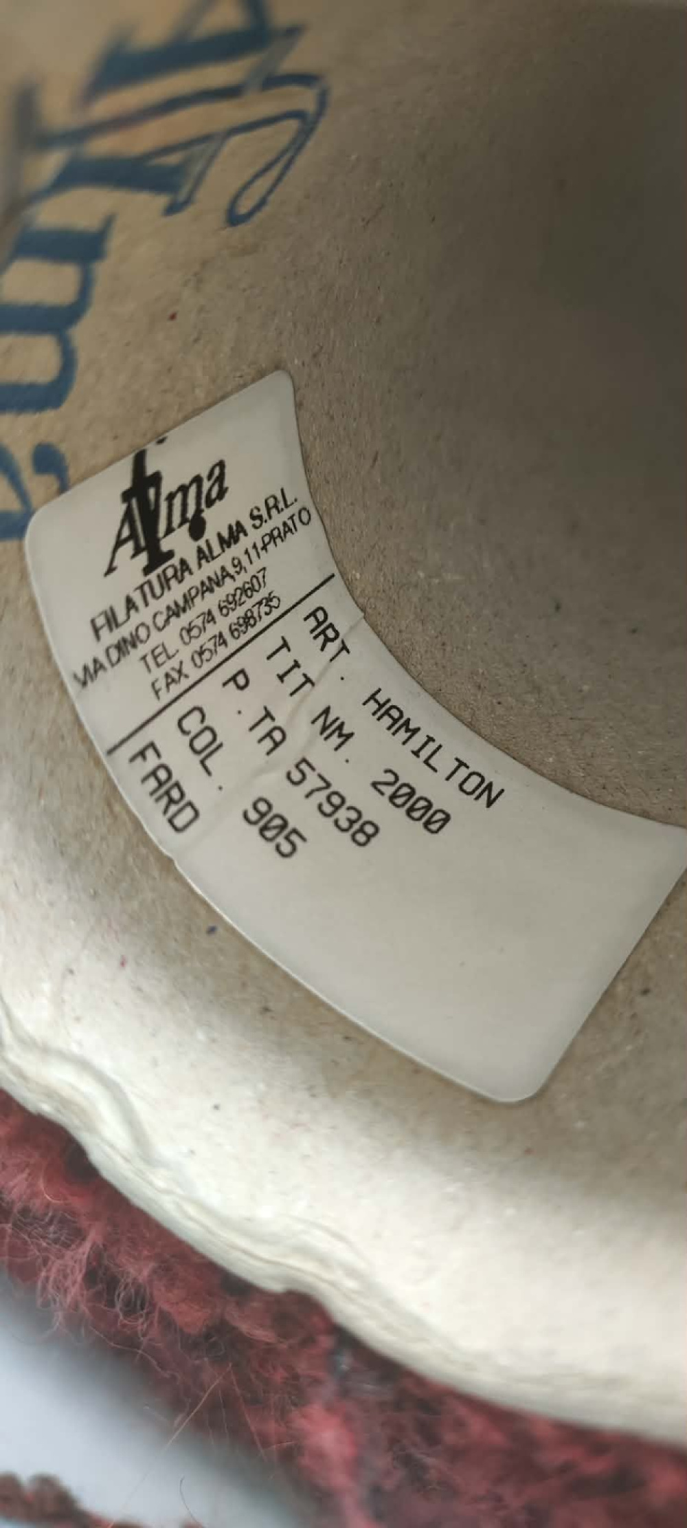 Compo non précisée. Test flamme positif : laine probable et fibres synthétiques.