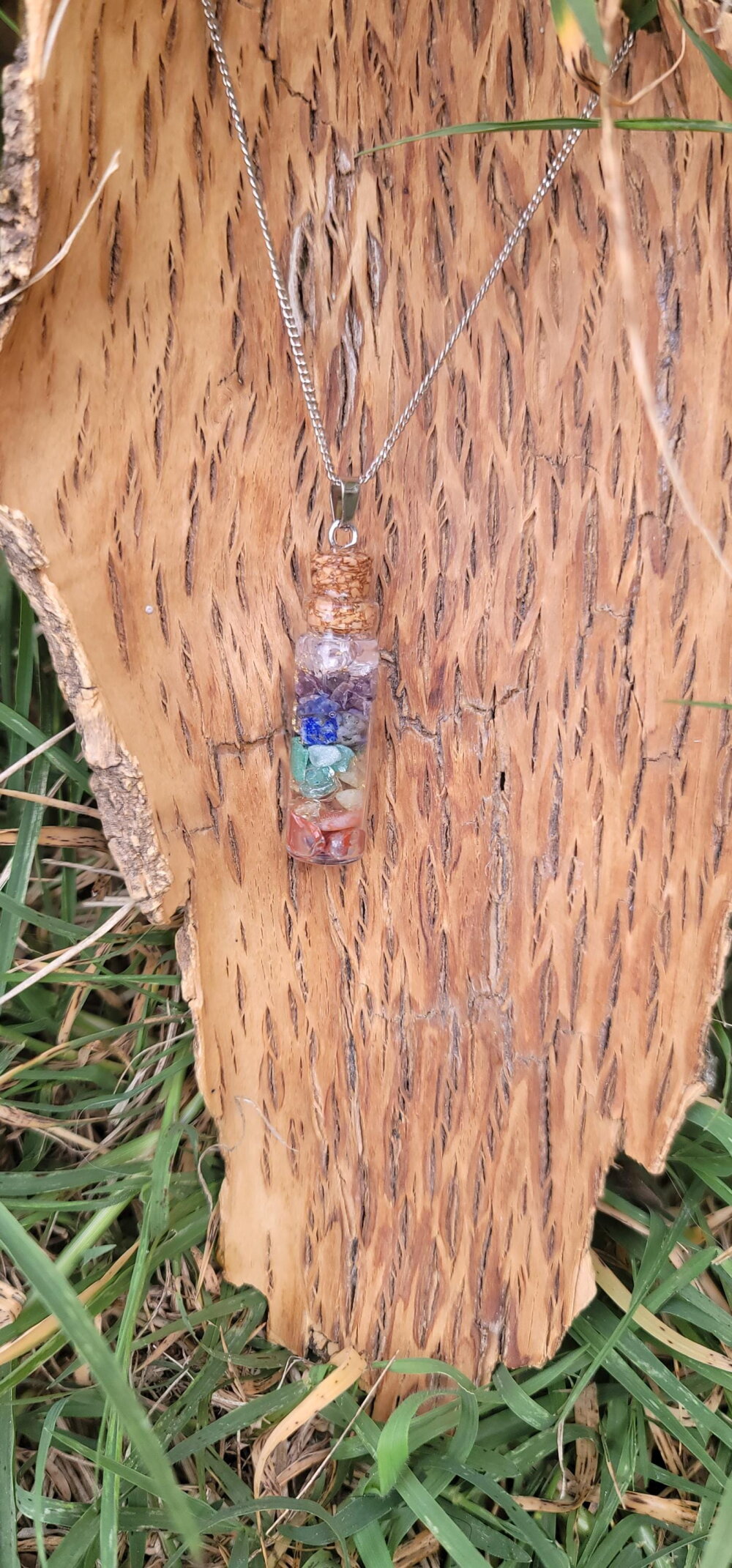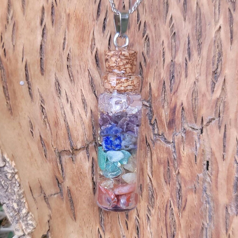 Fiole pendentif 7 chakras arbre de vie fait main orgonite rééquilibrage idée cadeau reiki