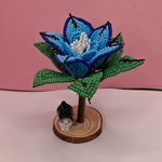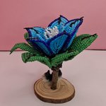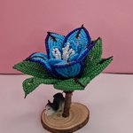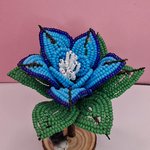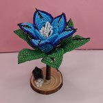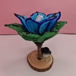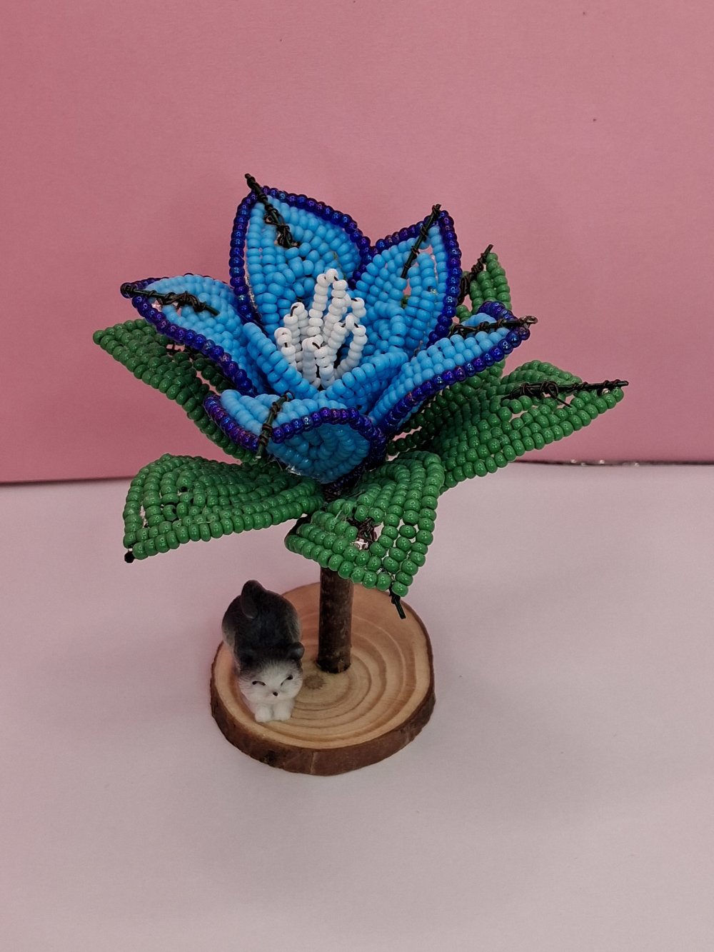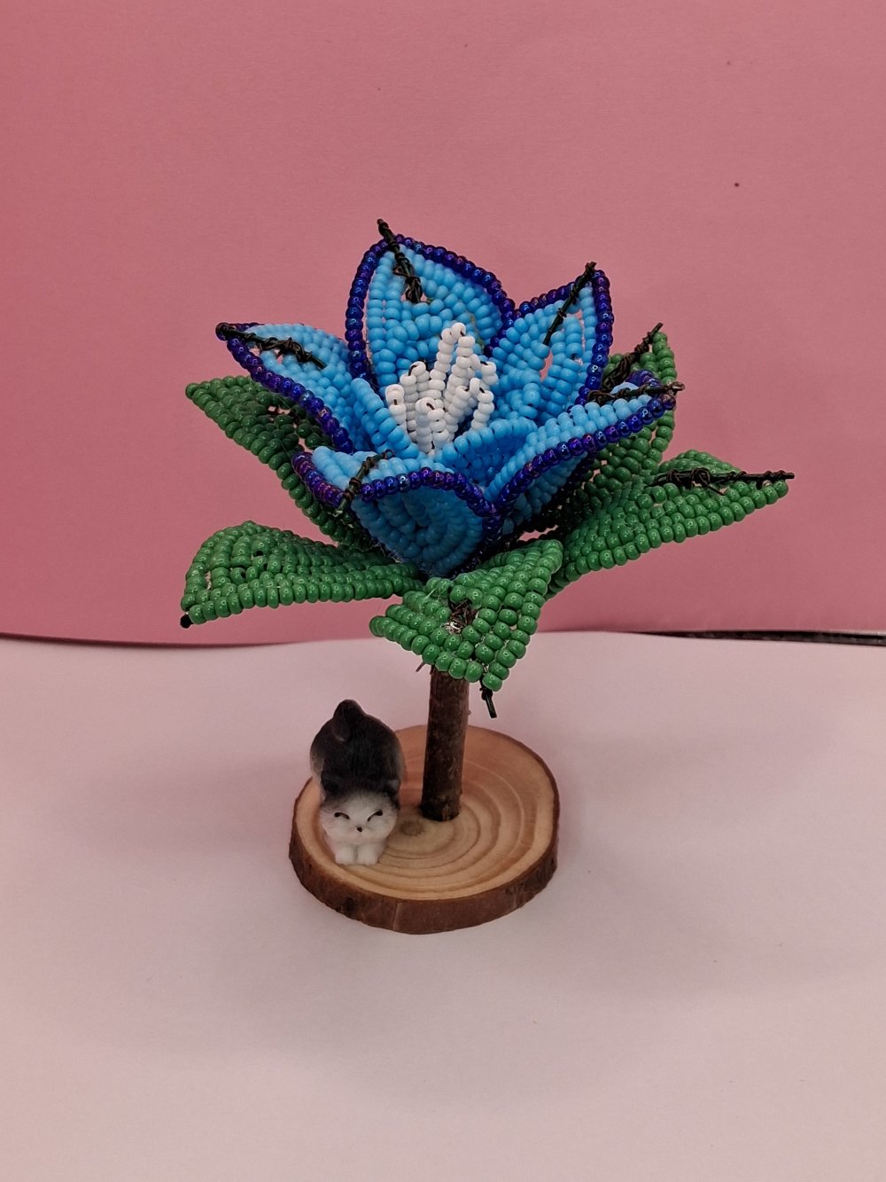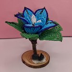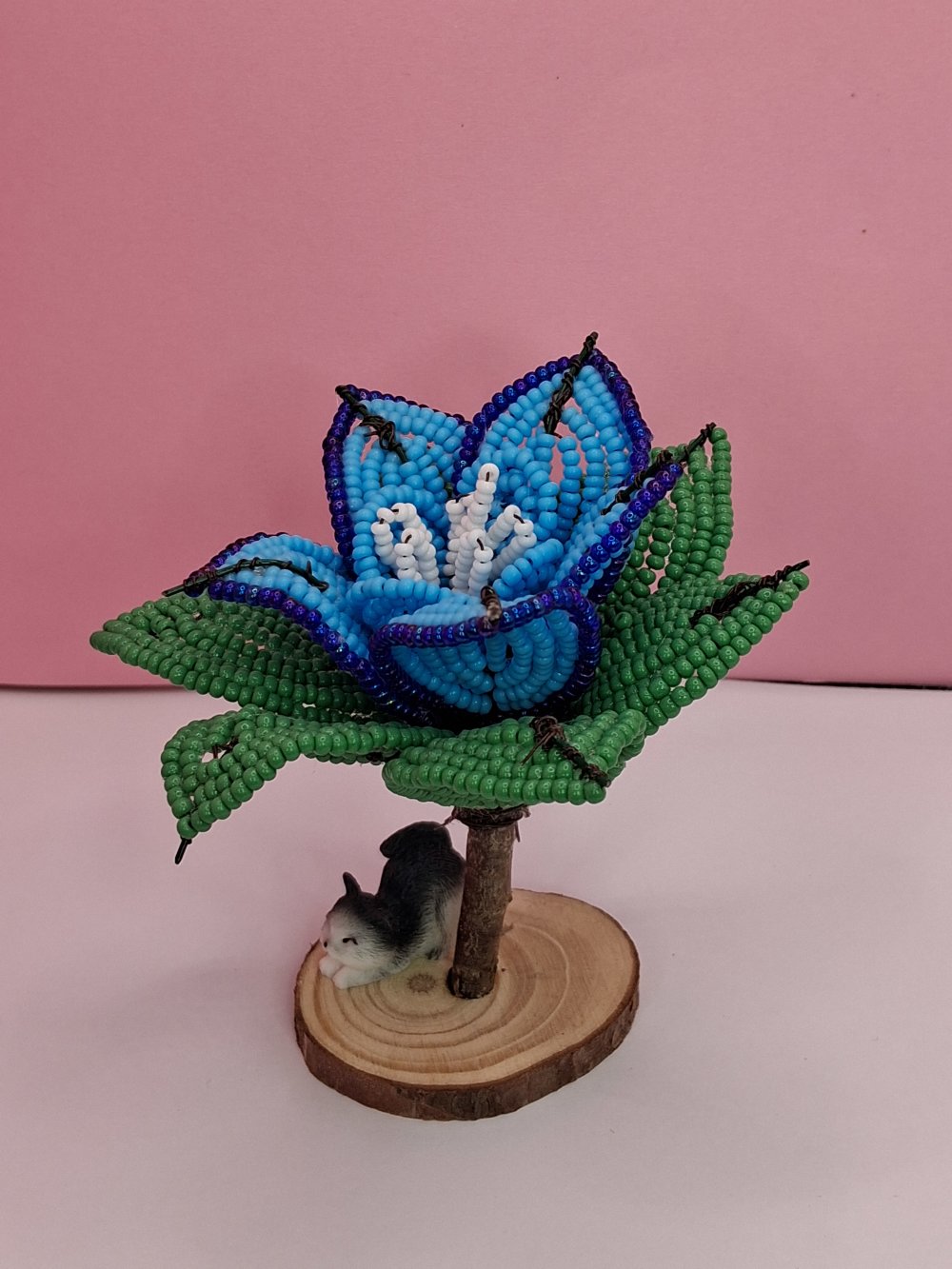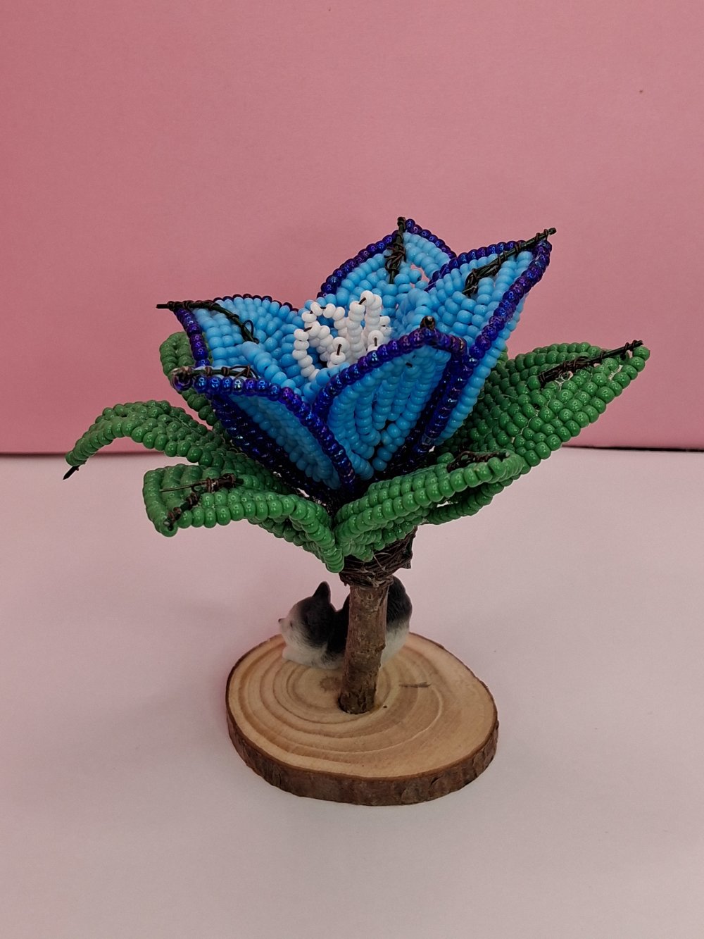 Découvrez cette magnifique fleur bleue et blanche, entièrement façonnée à la main avec des perles de rocaille.