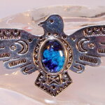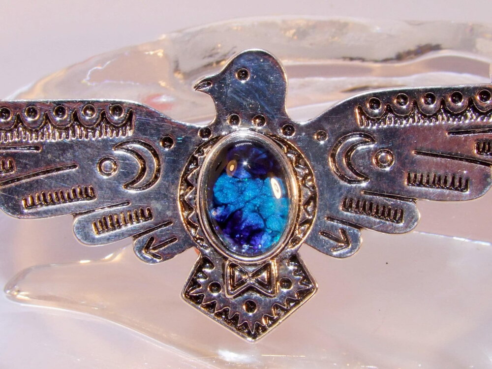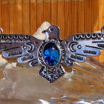 Article de Superbe Manufacture avec de très jolis motifs amérindiens gravés surmonté d'un joli cabochon ovale en verre coloration artisanale création Unique NAZCA SPIRIT .