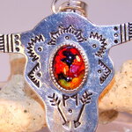 Article de Superbe Manufacture avec de très jolis motifs ethniques gravés surmonté d'un joli cabochon ovale en verre coloration artisanale création Unique NAZCA SPIRIT .