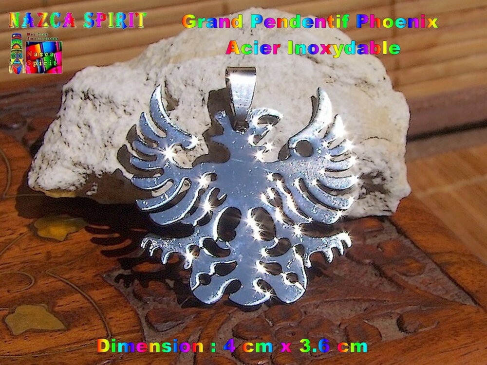 Grands Pendentifs Phoenix Stylisé Ciselé en Acier Inoxydable Argenté Brillant de 4.5 cm x 3.6 cm