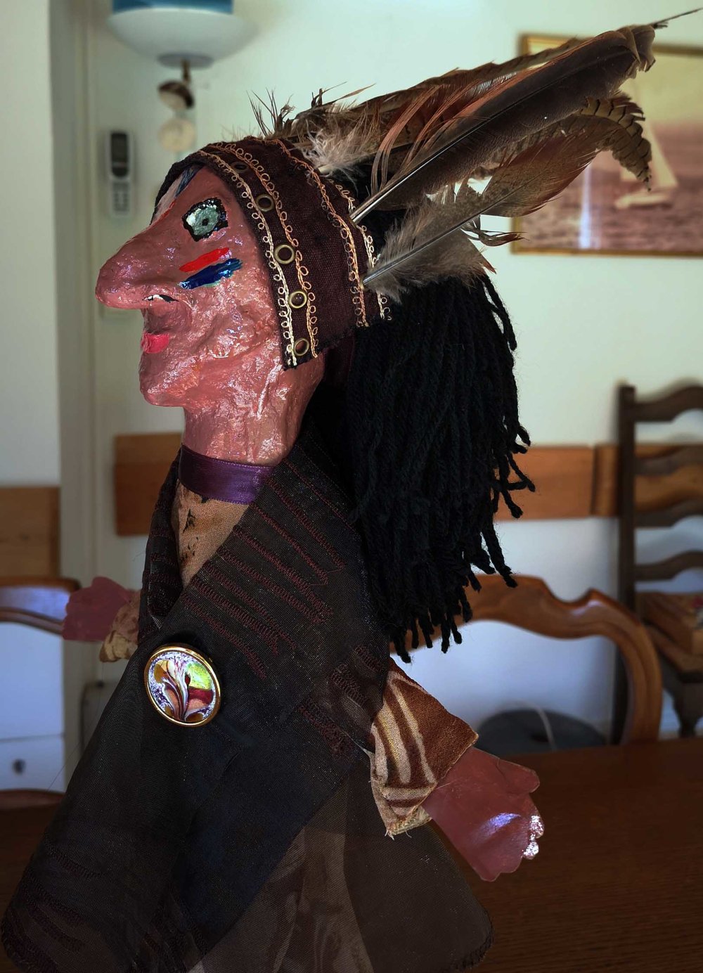 J'ai rajouté à mes créations la fabrication de marionnettes . Cet art également très ancien me passionne également c'est pourquoi je me suis intéressée à leur fabrication et notammant à la pâte à papier. Je fais des marionnettes à gaine qui se présentent sur l'avant bras et que l'on peut animer avec sa main et sùrement d'autres dans quelques temps.
