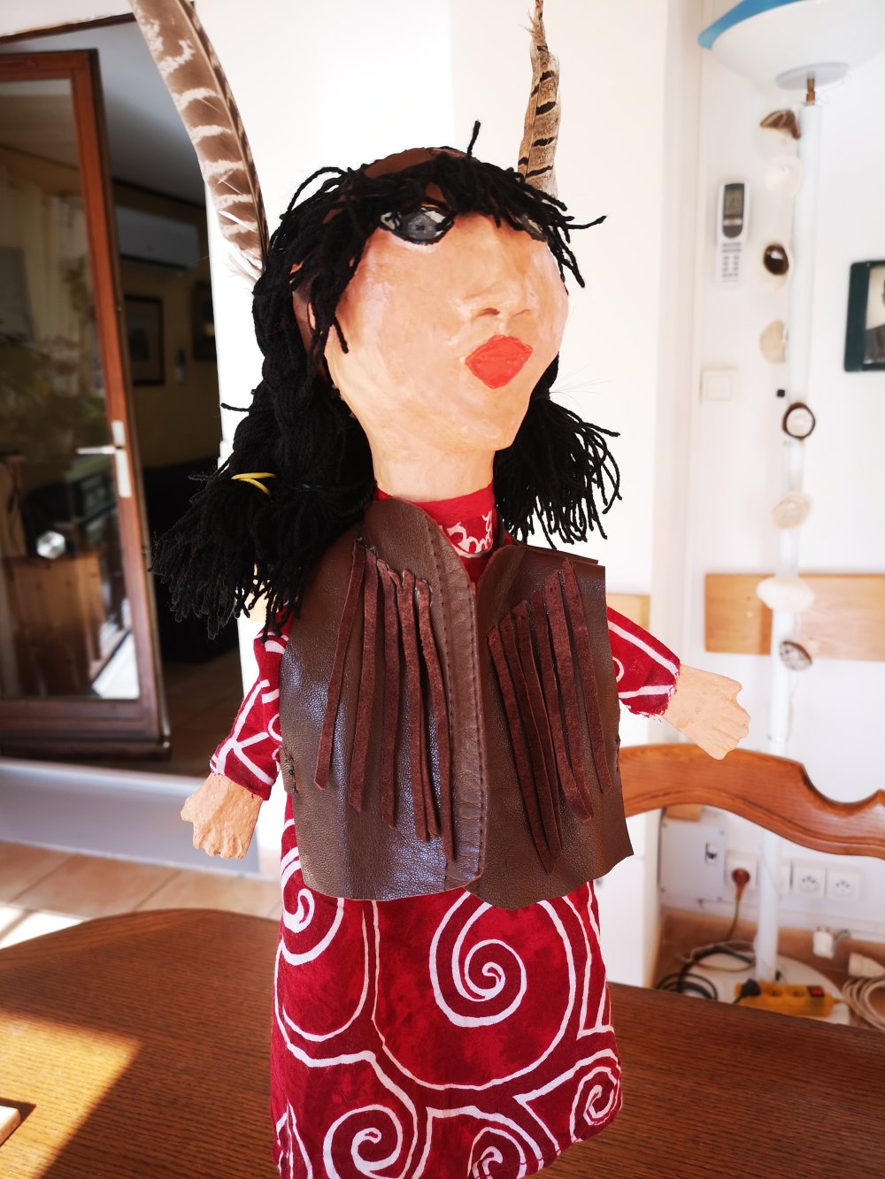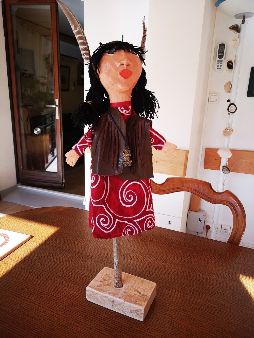 J'ai rajouté à mes créations la fabrication de marionnettes . Cet art également très ancien me passionne également c'est pourquoi je me suis intéressée à leur fabrication et notammant à la pâte à papier. Je fais des marionnettes à gaine qui se présentent sur l'avant bras et que l'on peut animer avec sa main et sùrement d'autres dans quelques temps.