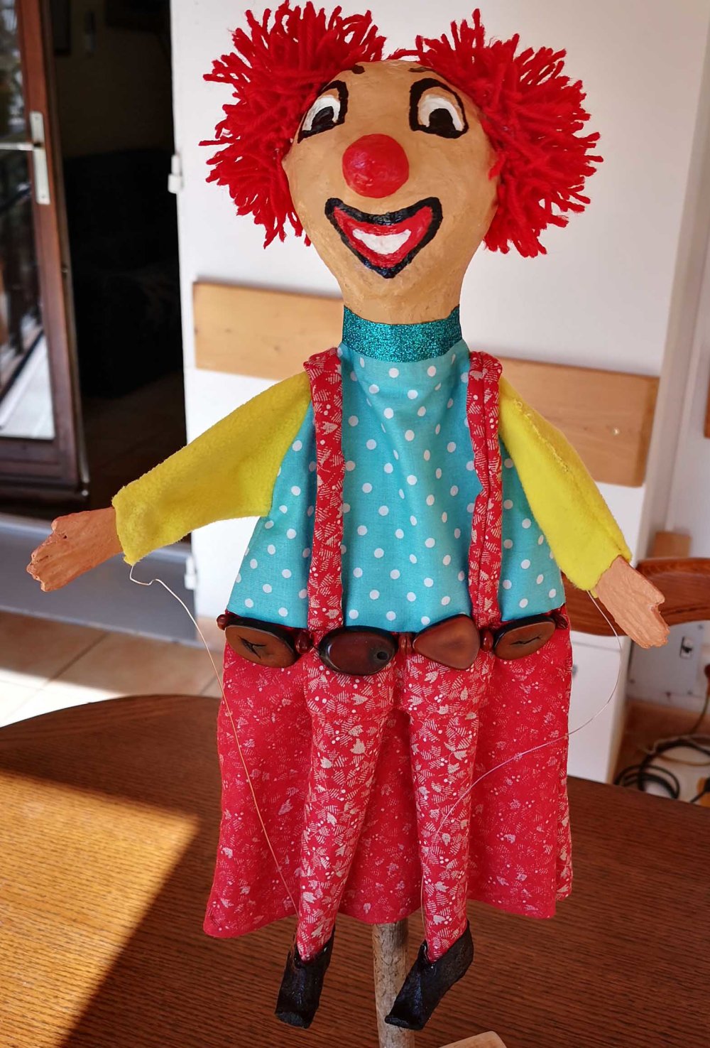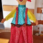 J'ai rajouté à mes créations la fabrication de marionnettes . Cet art également très ancien me passionne également c'est pourquoi je me suis intéressée à leur fabrication et notammant à la pâte à papier. Je fais des marionnettes à gaine qui se présentent sur l'avant bras et que l'on peut animer avec sa main et sùrement d'autres dans quelques temps.