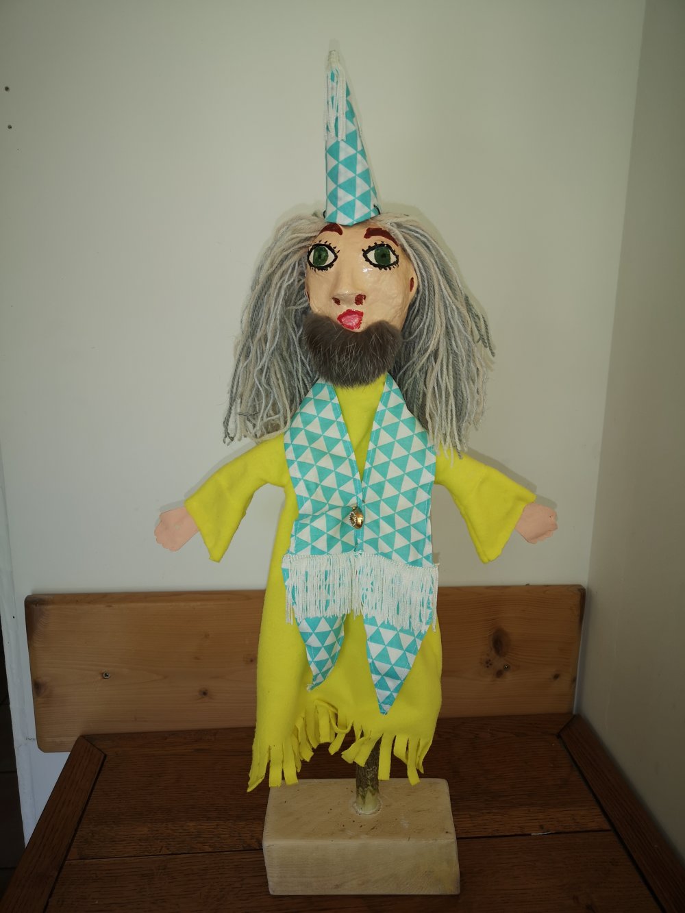 Le Magicien avec son chapeau pointu et sa barbe en fourrure