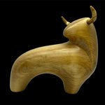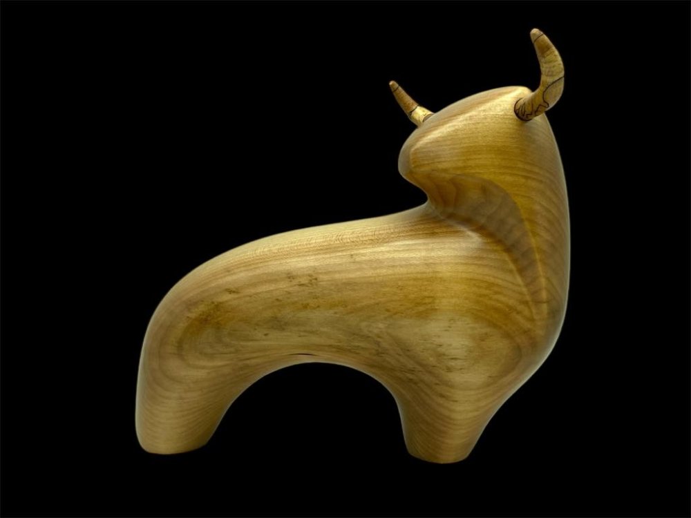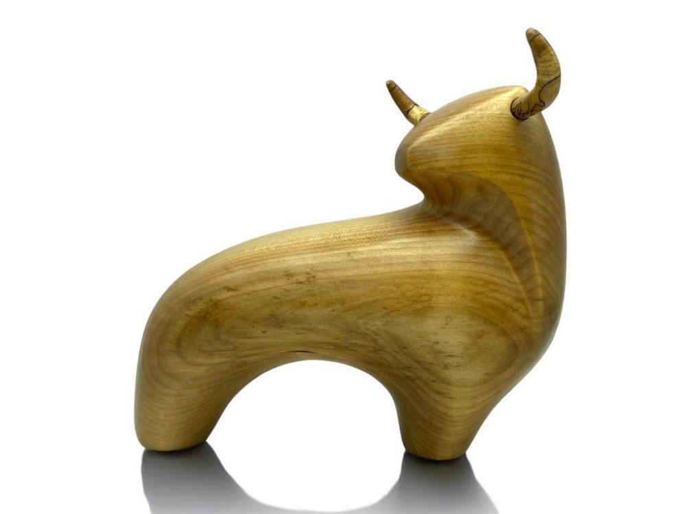 Sculpture d'un taureau en bois de tilleul huilé.