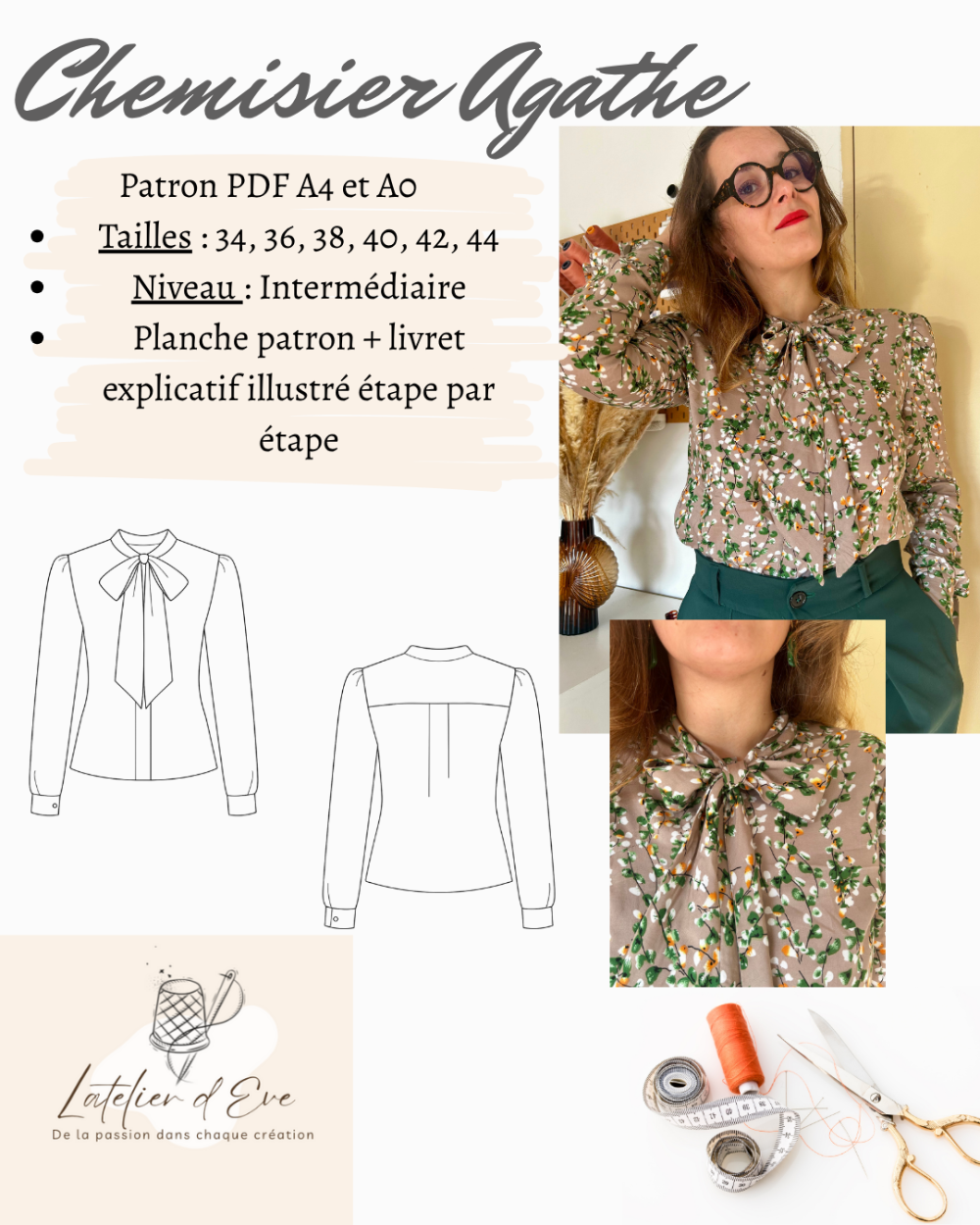Disponible du 34 au 44, ce patron s’adresse aux couturières de niveau intermédiaire. Il permet de jouer avec une variété de tissus légers (viscose, crêpe, satin, coton fin…) pour créer un chemisier unique et personnalisé.