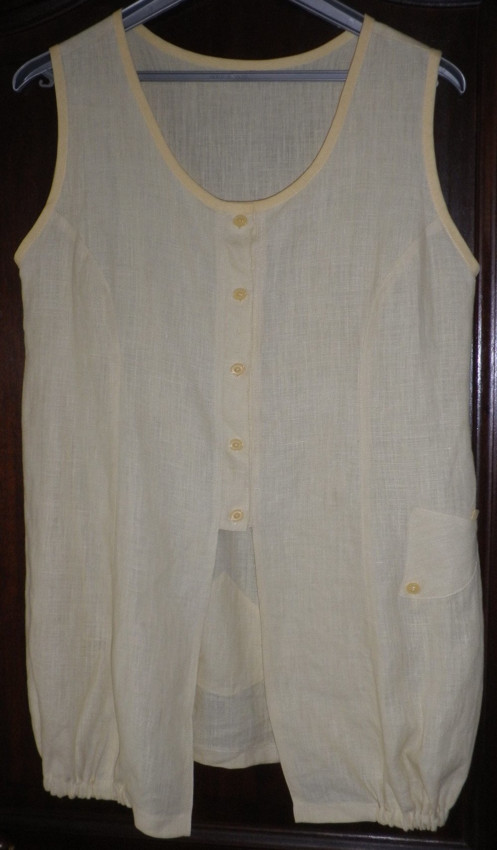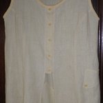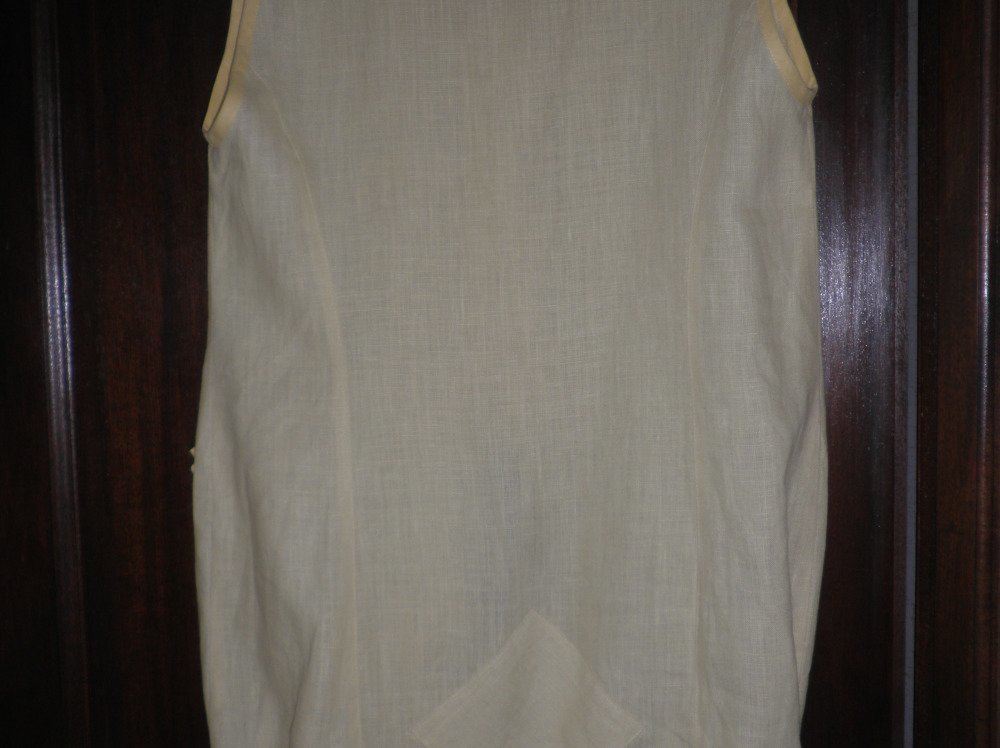 Tunique sans manche femme en tissu lin de couleur jaune paille avec ses 5 boutons sur le devant