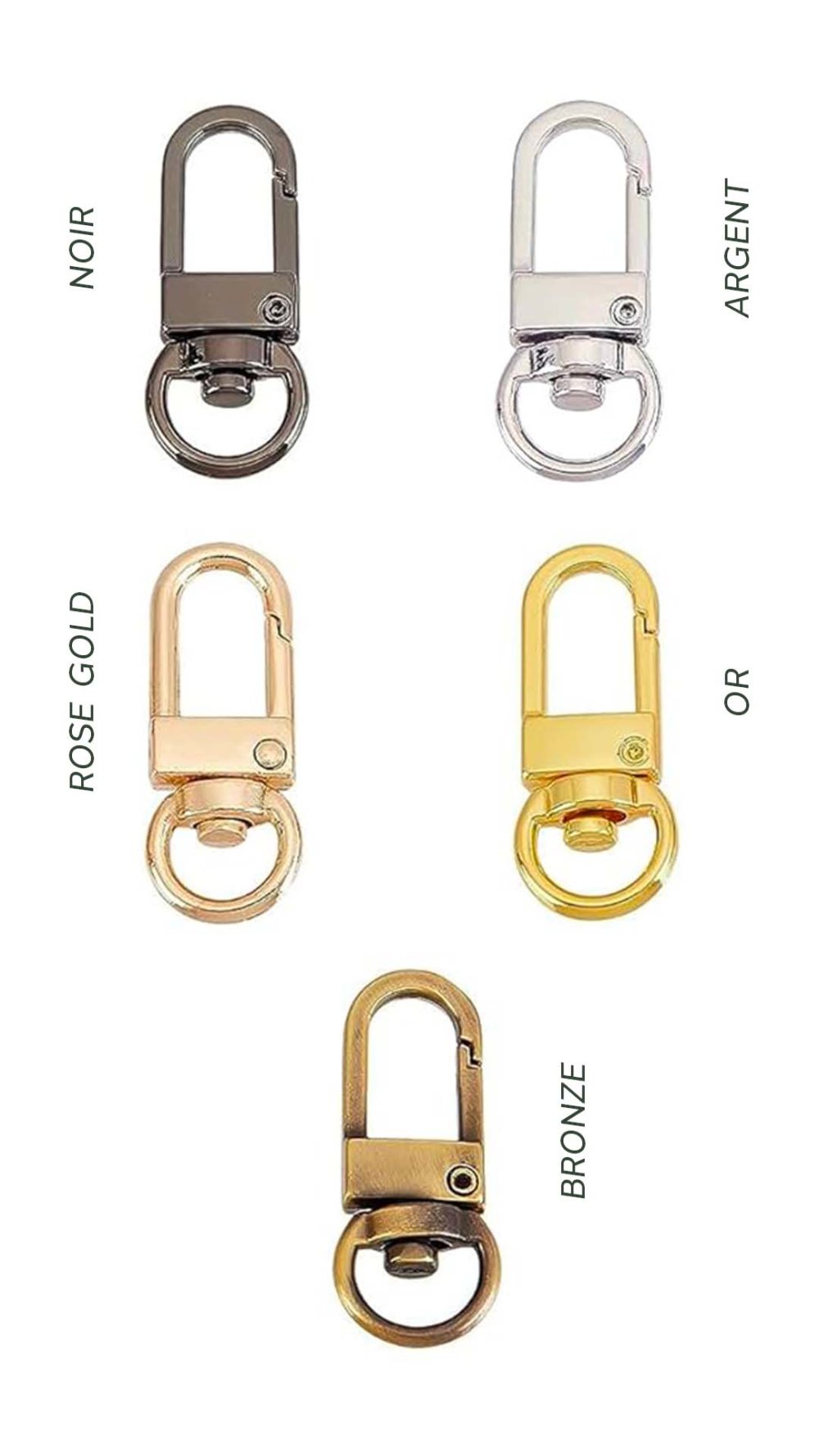 Les mousquetons réellement utilisés pour ce produit sont visibles dans la dernière image afin que vous puissiez choisir la couleur souhaitée.