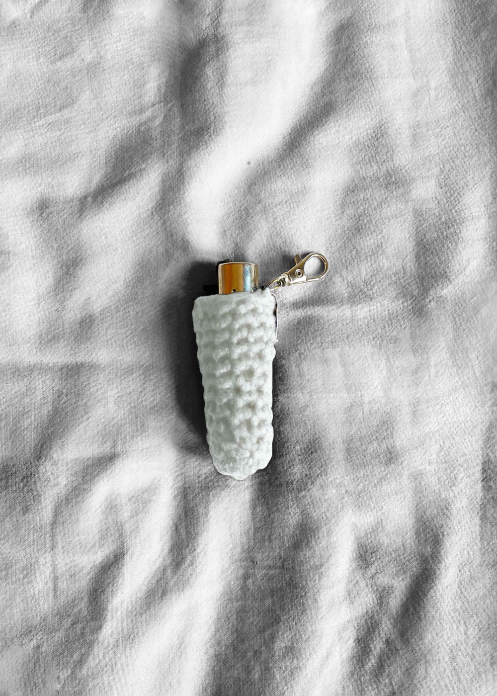 Protégez votre briquet avec cette housse en crochet faite main de couleur Ecru, accompagnée de son mousqueton pour l’accrocher partout. Personnalisez cet accessoire en sélectionnant la couleur du mousqueton.