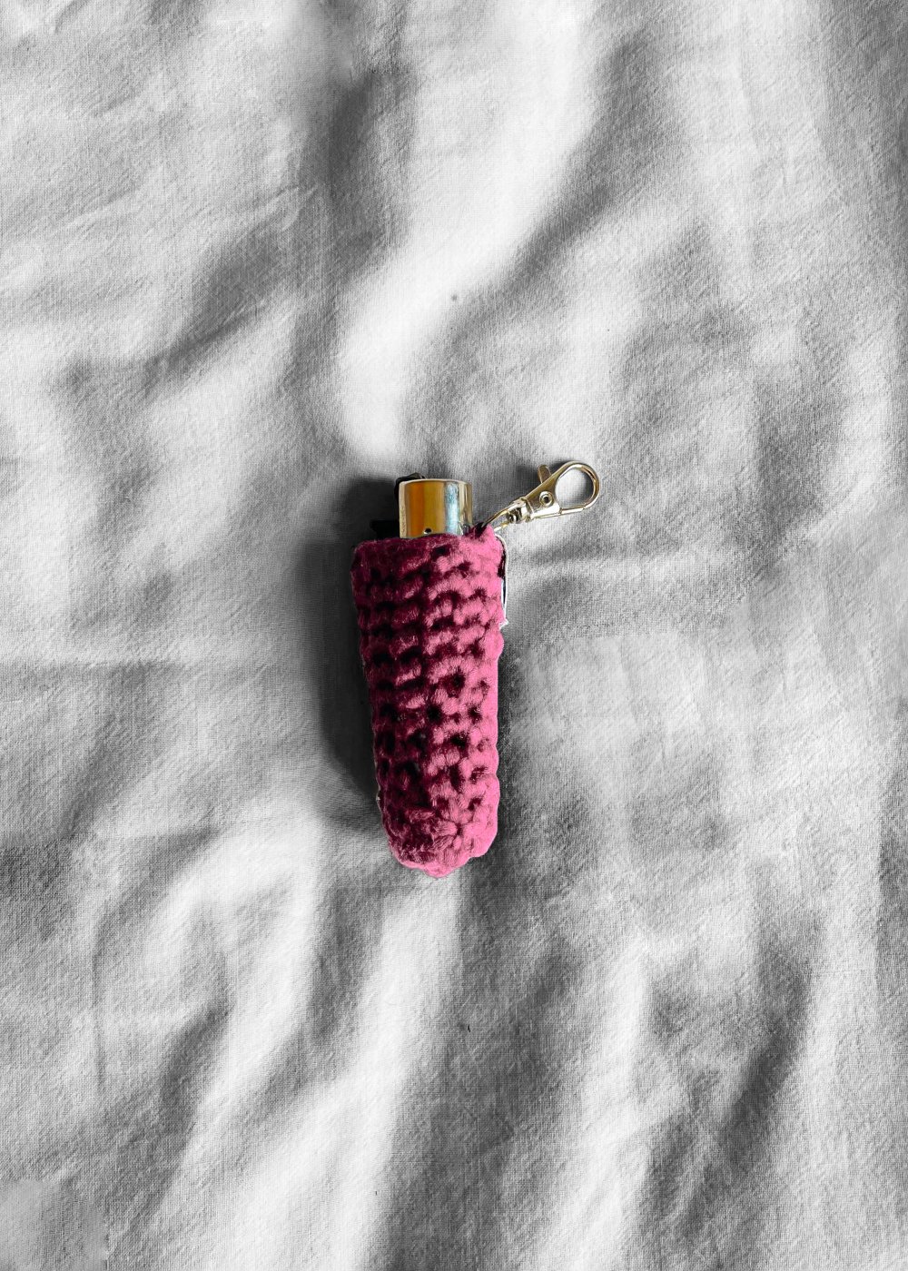 La housse pour briquet Rose Bonbon Atelier Daur est crochetée à la main et pensée pour offrir un rendu solide, pratique et élégant. Grâce à son mousqueton, elle s’accroche facilement à vos clés, votre sac ou votre ceinture : votre briquet est toujours à portée de main, sans risque de l’égarer.