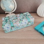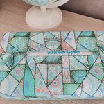 Tissu coton à motifs géométriques, entourage en dentelle de couleur verte et 2 petits nœuds papillon sur le dessus