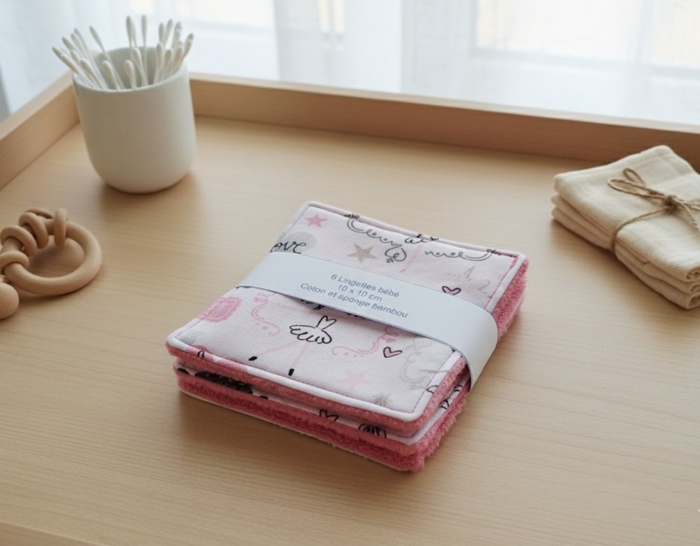Un peu de douceur pour le change de bébé avec ce lot de 6 lingettes lavables