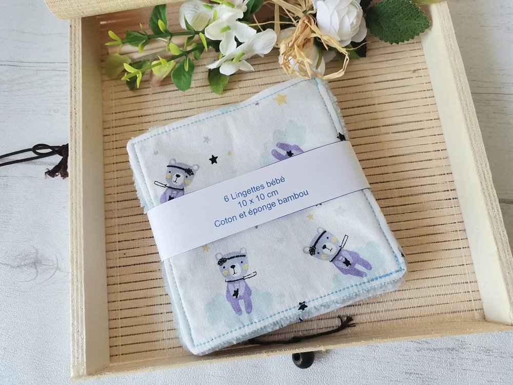 Un peu de douceur pour le change de bébé avec ce lot de 6 lingettes lavables