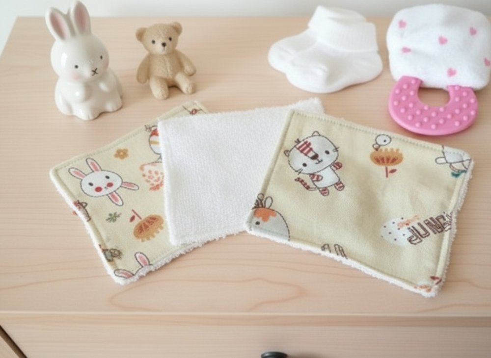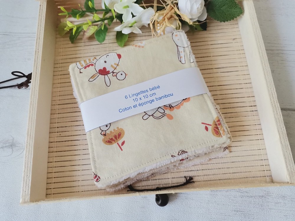 Un peu de douceur pour le change de bébé avec ce lot de 6 lingettes lavables