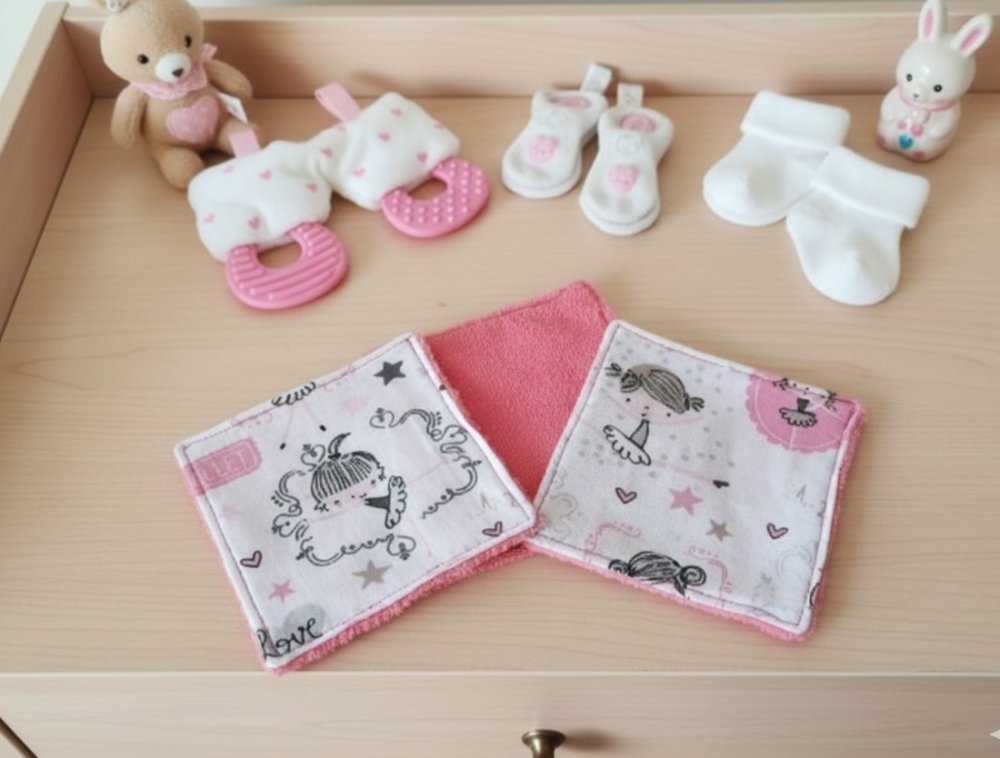 Un peu de douceur pour le change de bébé avec ce lot de 6 lingettes lavables