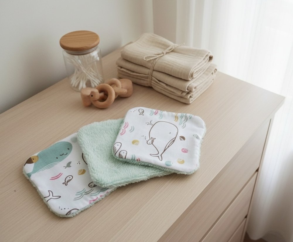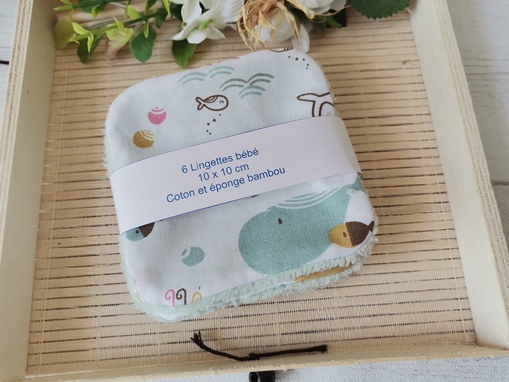 Lot de 6 lingettes lavables pour bébé coton et éponge