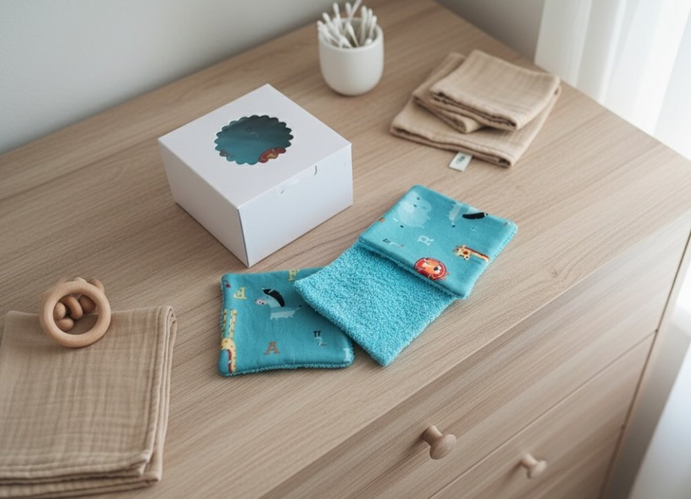 Boite de 14 lingettes lavables pour bébé coton et éponge