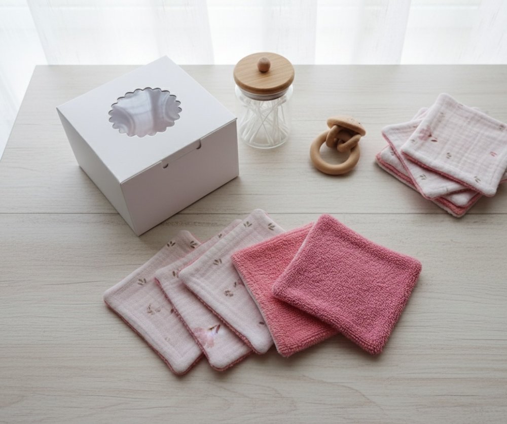 Boite de 8 lingettes lavables bébé double gaze et éponge bambou