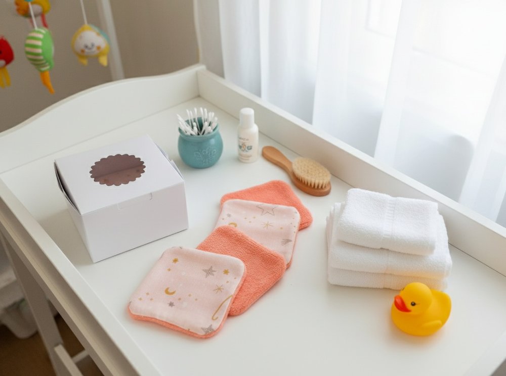 Un peu de douceur pour le change de bébé avec cette jolie boite de 9 lingettes lavables