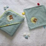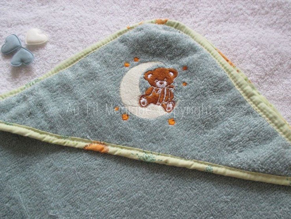 Motif brodé sur la capuche de la cape de bain et le doudou
