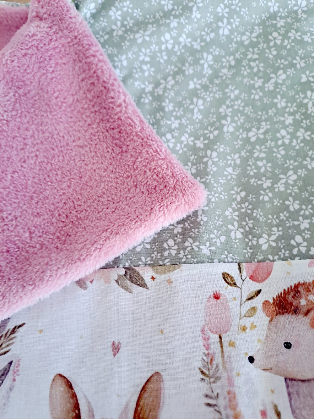 Matières : une face coton imprimé + une face polaire doudou tout doux