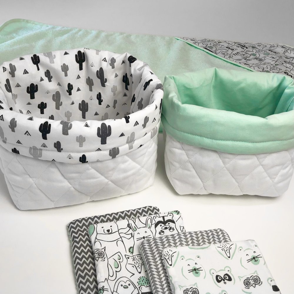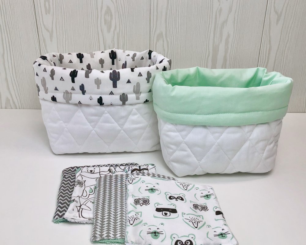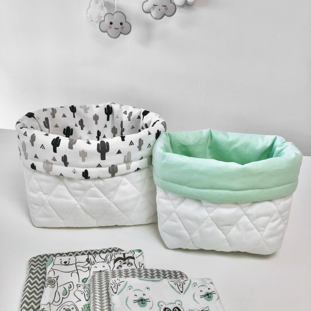 2 panières de taille différente pour ranger les petits accessoires pour le change de bébé.