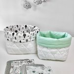 Lot de 2 panières ou pochons assortis en tissu coton matelassé