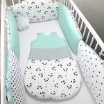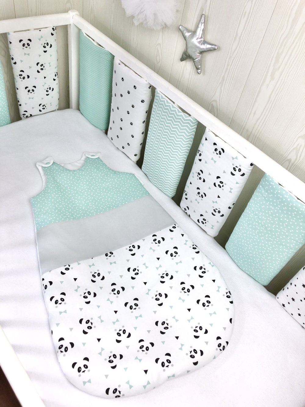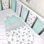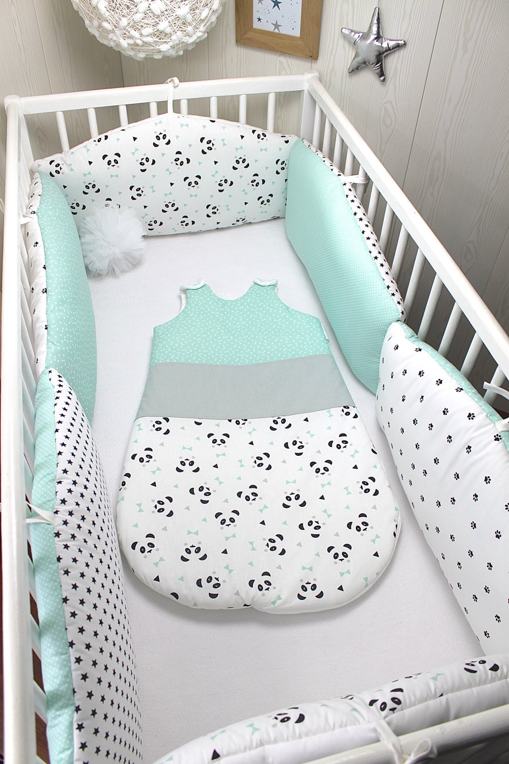 Les tours de lit sont réalisés avec des matériaux certifiés Oeko-Tex en coton et ouate standard 100 classe 1, destinée aux produits de puériculture. A attacher soigneusement aux barreaux avec les liens de longueur réglementaire