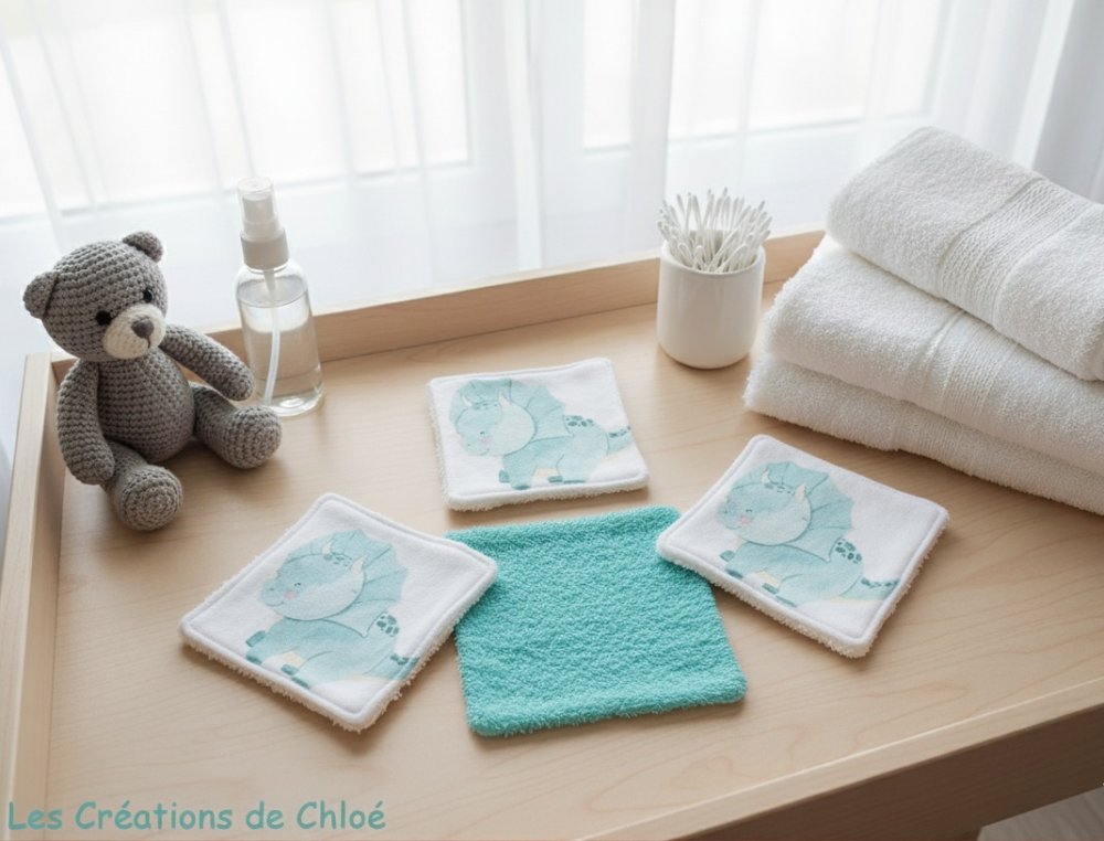 Un peu de douceur pour le change de bébé avec ce lot de 4 lingettes lavables