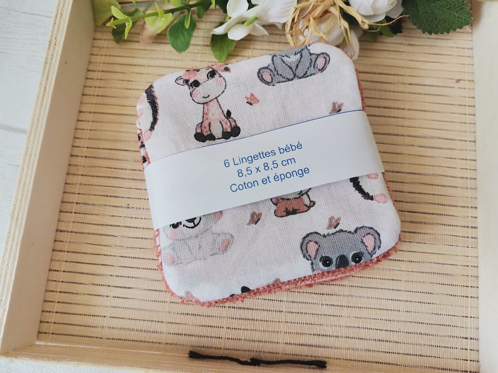 Lot de 6 lingettes lavables pour bébé coton et éponge