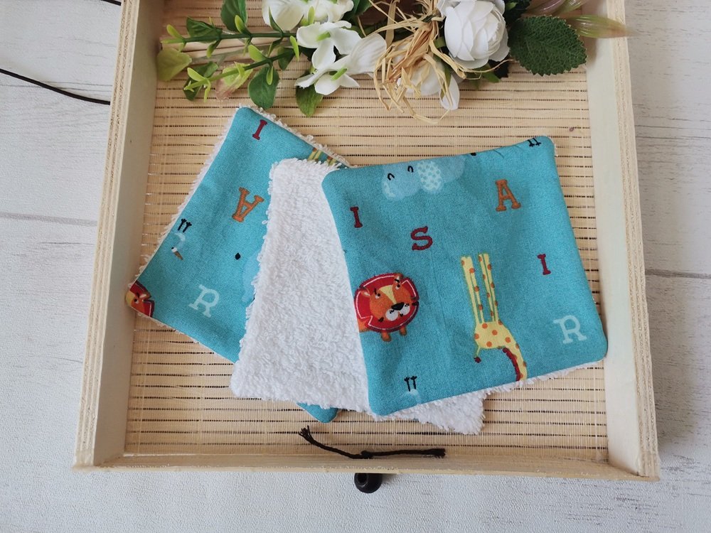 Lot de 6 lingettes lavables pour bébé coton et éponge