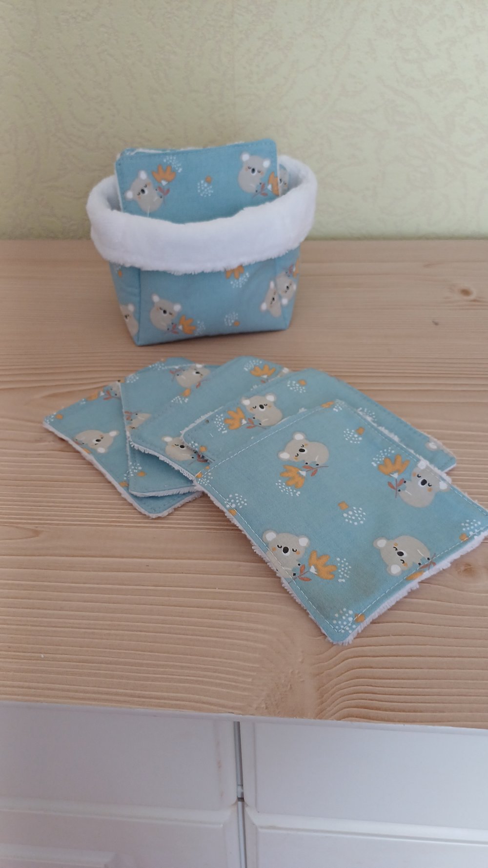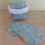 panier de lingettes démaquillante pour bébé ,,lot de 10 lingettes , dite adieu aux disques de coton , lingette en éponge bambou pour débarbouiller bébé tout en douceur.Elle mesure environ 10 cm une face coton une face éponge bambou Lavage machine 40°