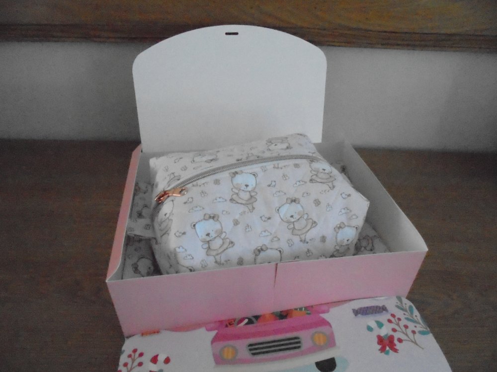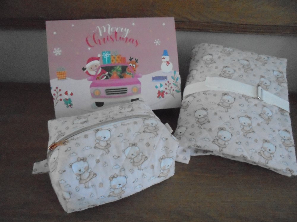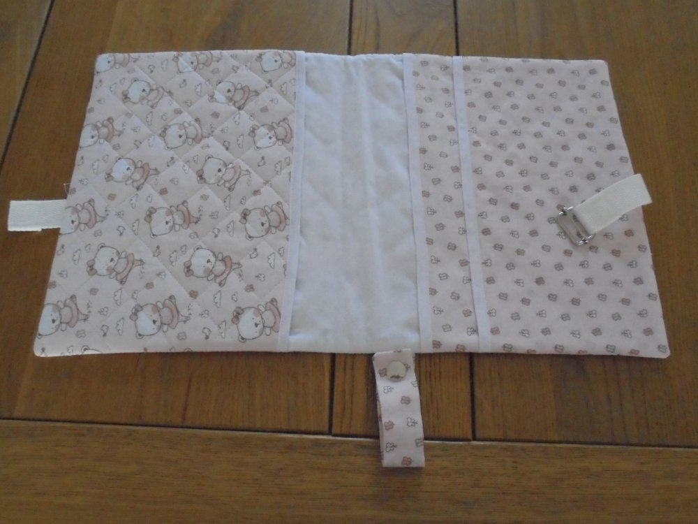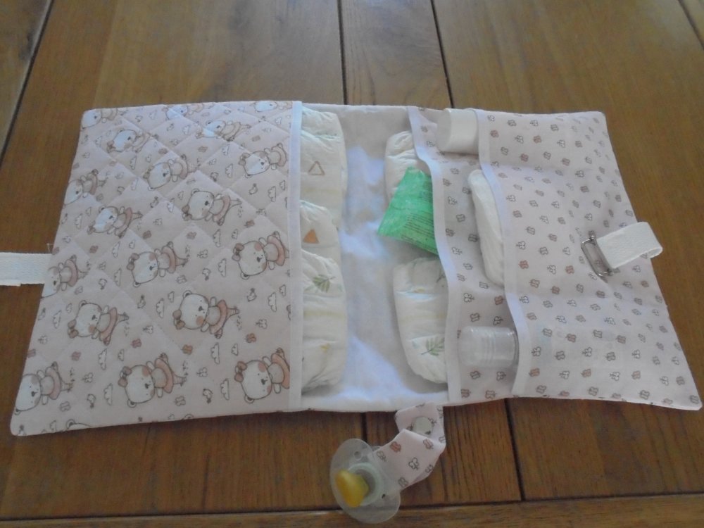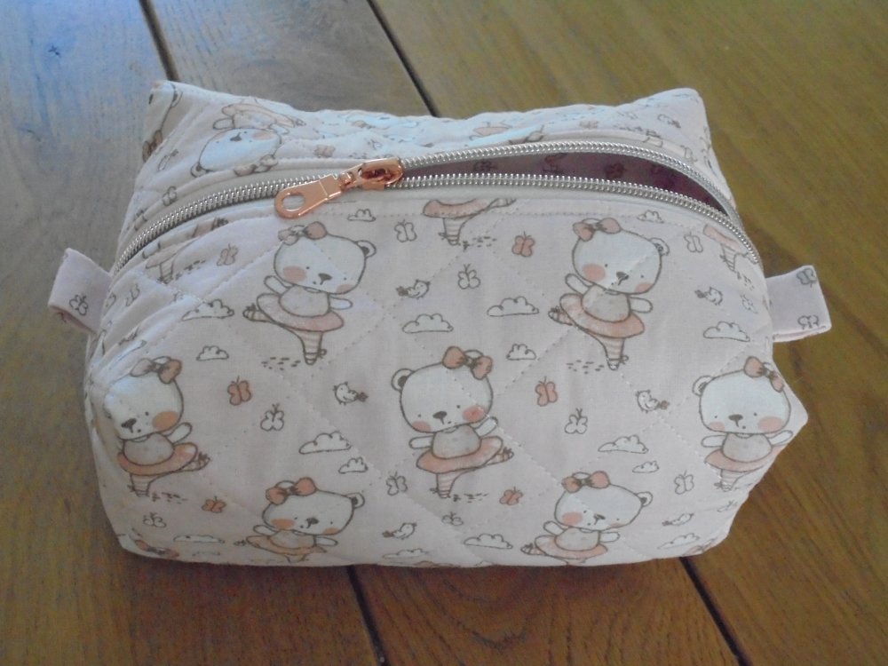 Je vous propose une pochette à langer nomade et sa trousse de toilette cousue avec du tissu matelassé certifié Oeko-tex " Winnie rose "