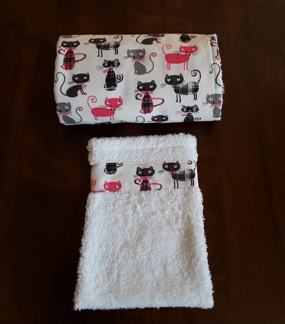 Le tapis à langer nomade pratique partout est l 'indispensable pour les sorties de bébé avec son gant de toilette CREATION ARTISANALE MADE IN FRANCE