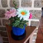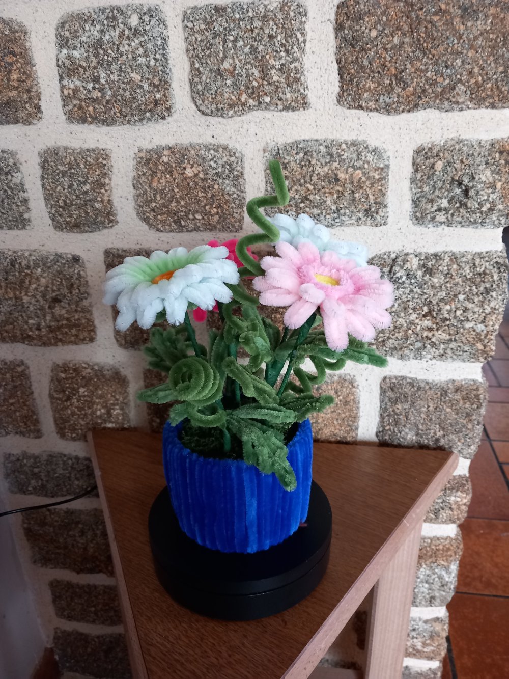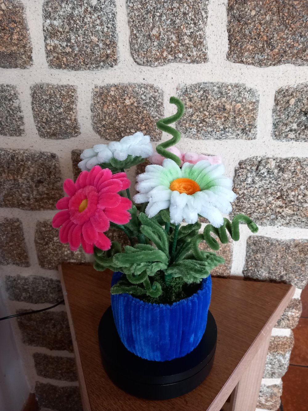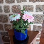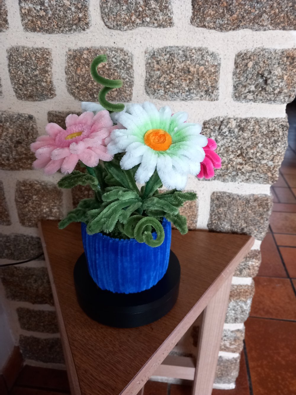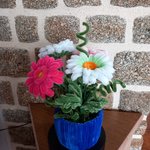 Pot de fleurs immortelles en cure pipe ou fil chenille.