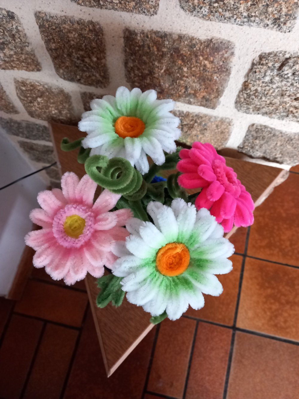 Créations et fabrications de fleurs immortelles en cure pipe ou fil chenille.