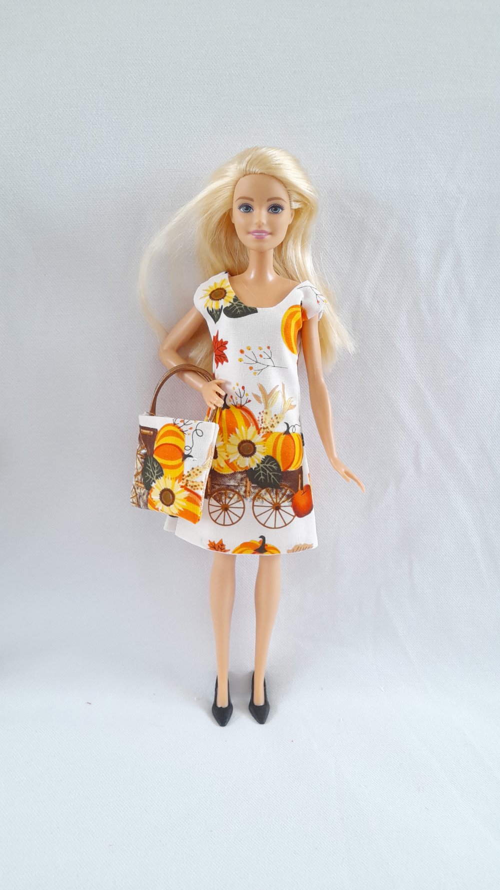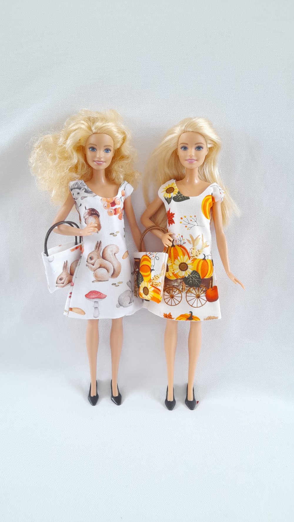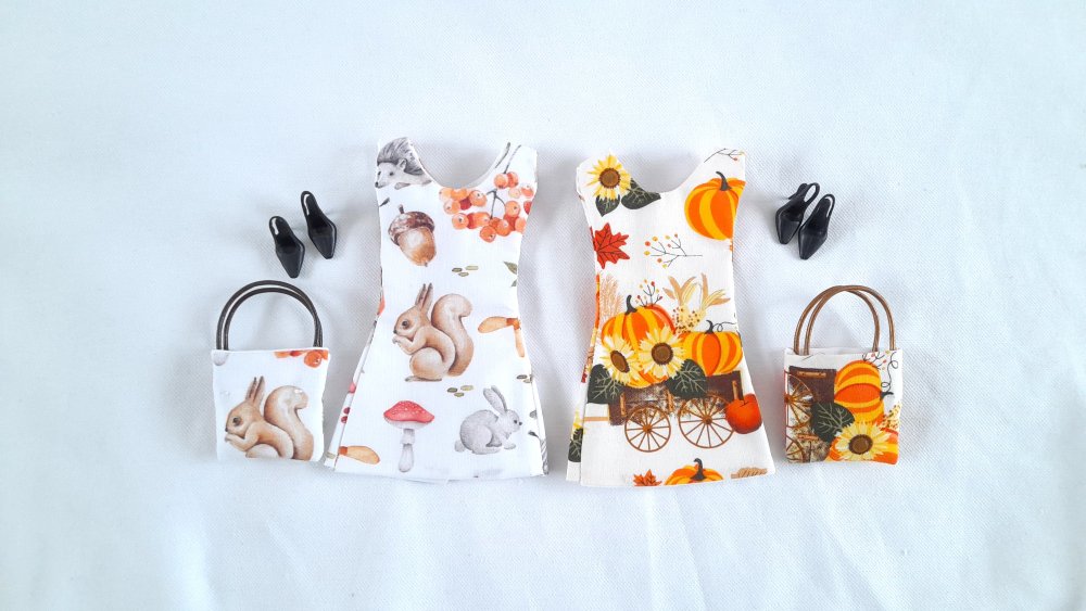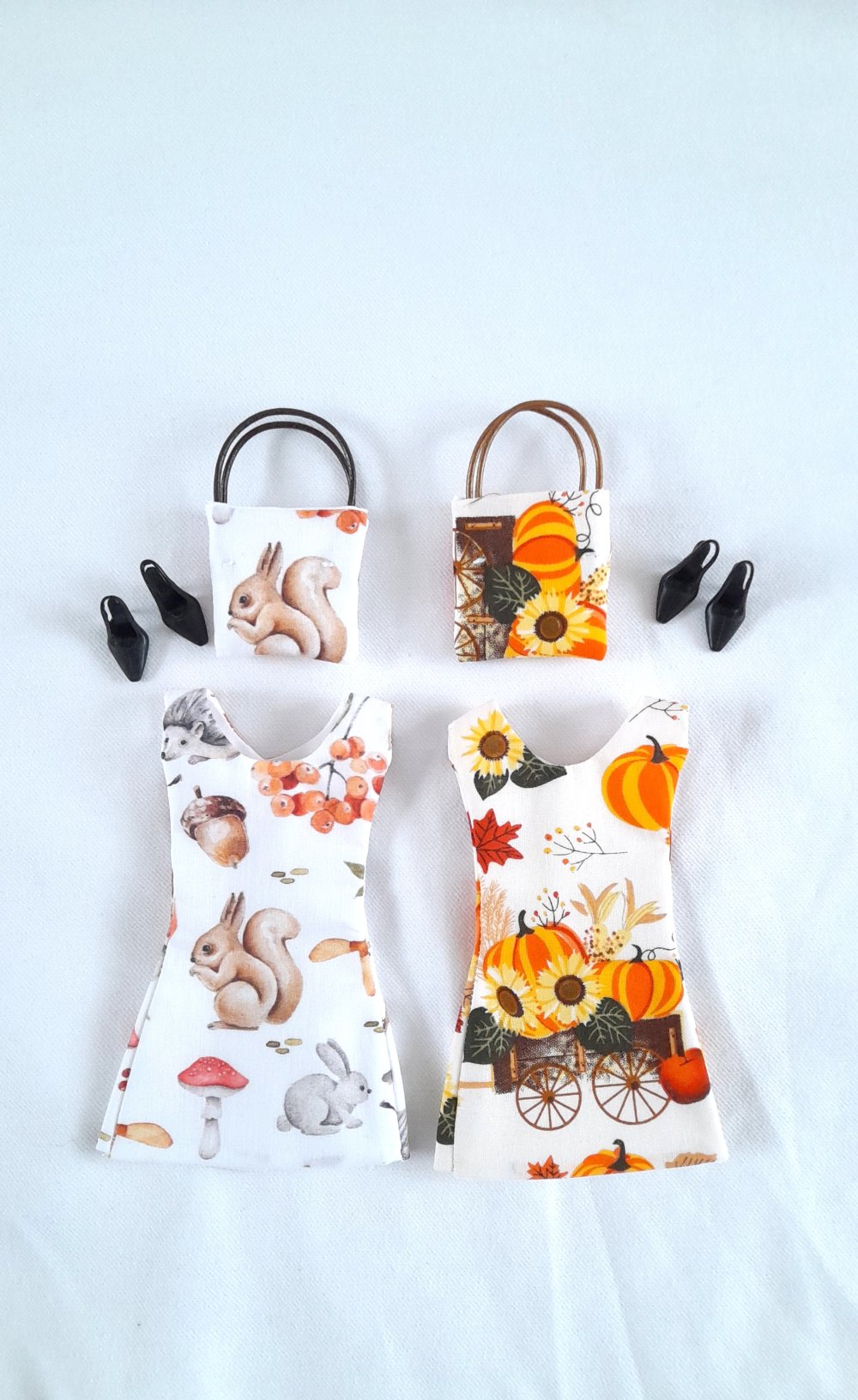 Robes pour poupée en coton et cousues main, lot de 2 tenues assorties, motifs d'automne