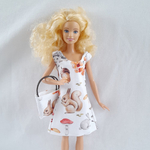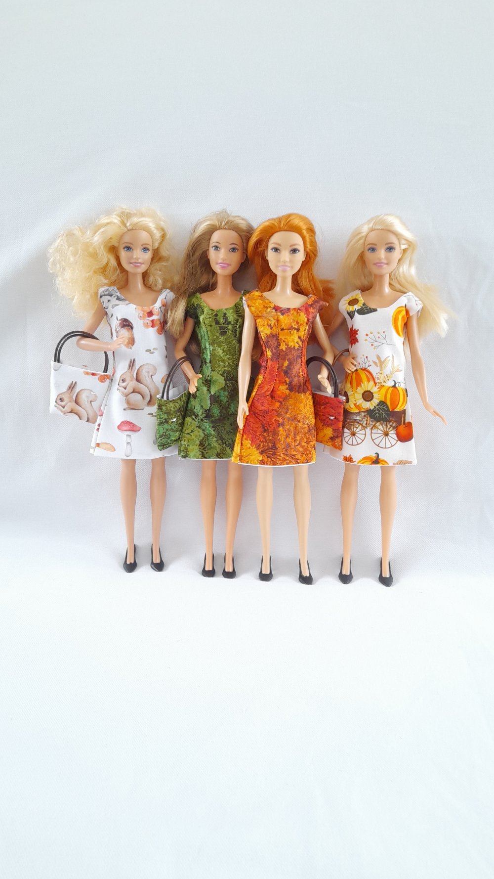 La tenue comprend 2 jolies robes et leur sac assorti, avec 2 paires de chaussures, les vêtements sont créés et cousus par mes soins.